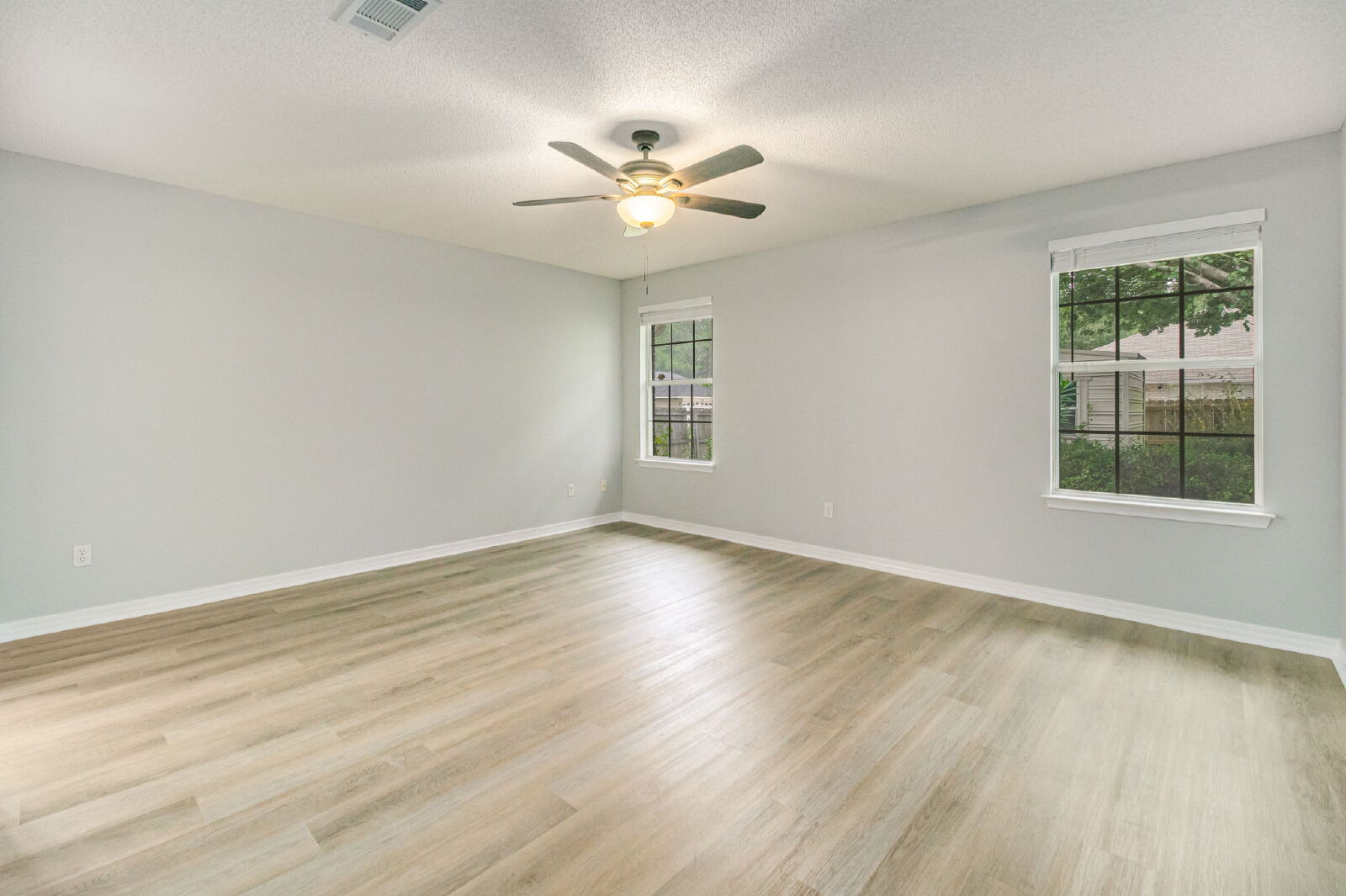 This 3 bedroom 2 bath home is conveniently located to NAS Pensacola and the Perdido Key beaches. An inviting front porch welcomes you into an open floor plan brick home with vaulted ceilings and oversized windows for lots of natural light. This home features new luxury vinyl plank flooring throughout the whole house. There is a bonus room that could be used as an office space or playroom as you enter the house. The upgraded kitchen features new Silver Fantasy granite, new stainless appliances, pantry storage & eat-in dining! The dining area opens right off the kitchen and into the living area which features beautiful high ceilings. The living room is light and bright opening out to the large tiled Florida room. The backyard is fully fenced with a shed. The owner's suite is spacious with a dual sink vanity as well as a large soaker tub and separate shower. There are separate his and hers large walk-in closets! Two guest rooms & full guest bath. Indoor laundry/mud room features added storage. Attached 2 car garage. Check out the virtual tour, and make your appointment today!