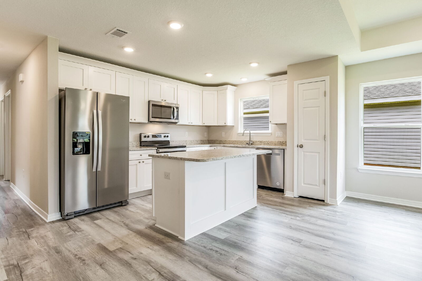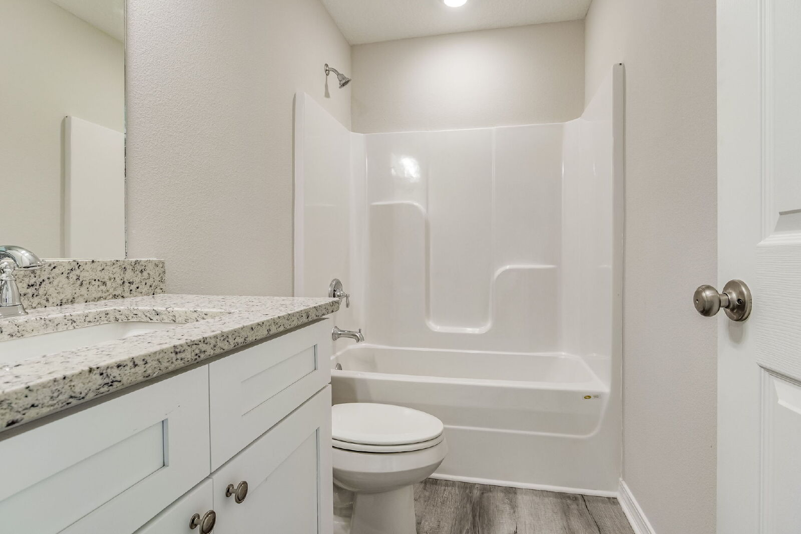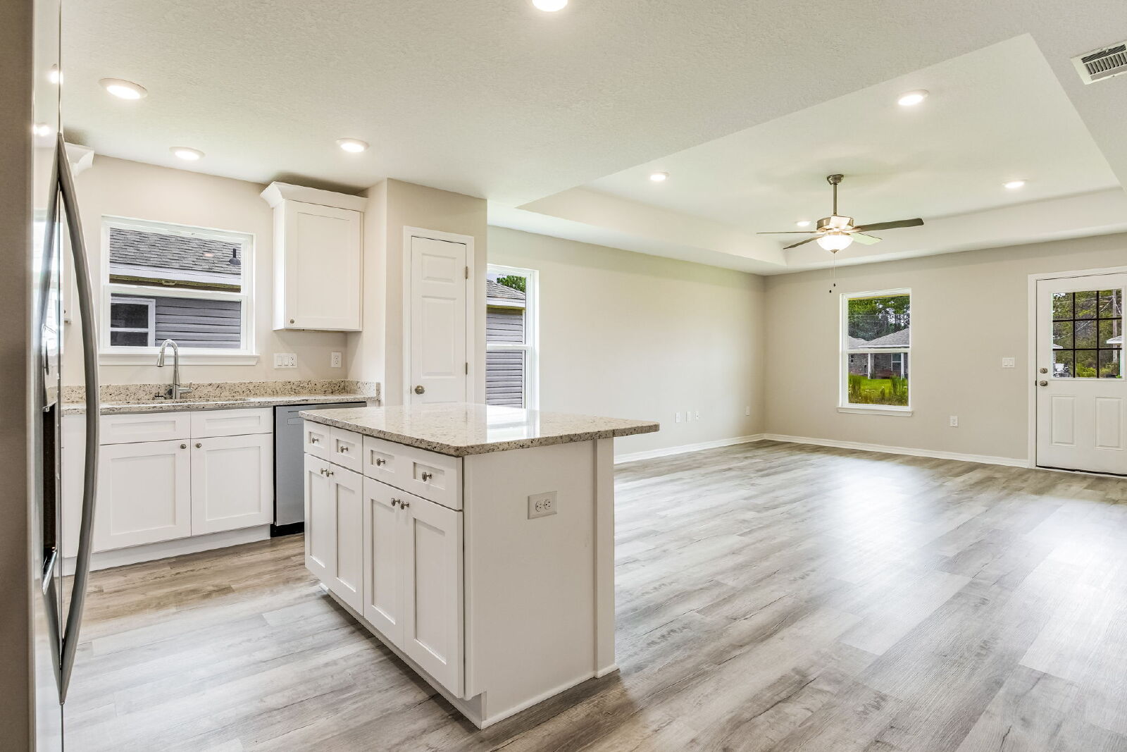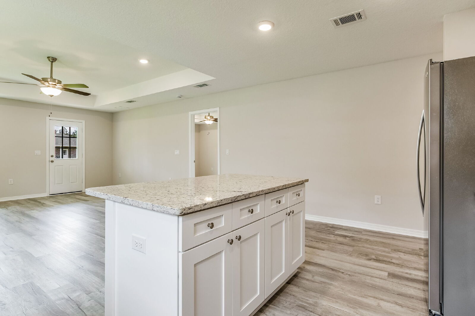 This 3 bed 2 bath home comes with LVP floors throughout the whole home, granite countertops and white shaker soft close cabinets. This well thought out plan features over 1373 square feet and a 1 car garage. The large covered porch welcomes you home. Upon entering the home from the spacious foyer, the two guest bedrooms are conveniently located at the front of the house along with laundry room and full bath. Just beyond the foyer is the open kitchen which overlooks the dining area and spacious family room. The kitchen features granite countertops and makes the perfect space for family gatherings. Fenced in backyard. Schedule your showing today!
