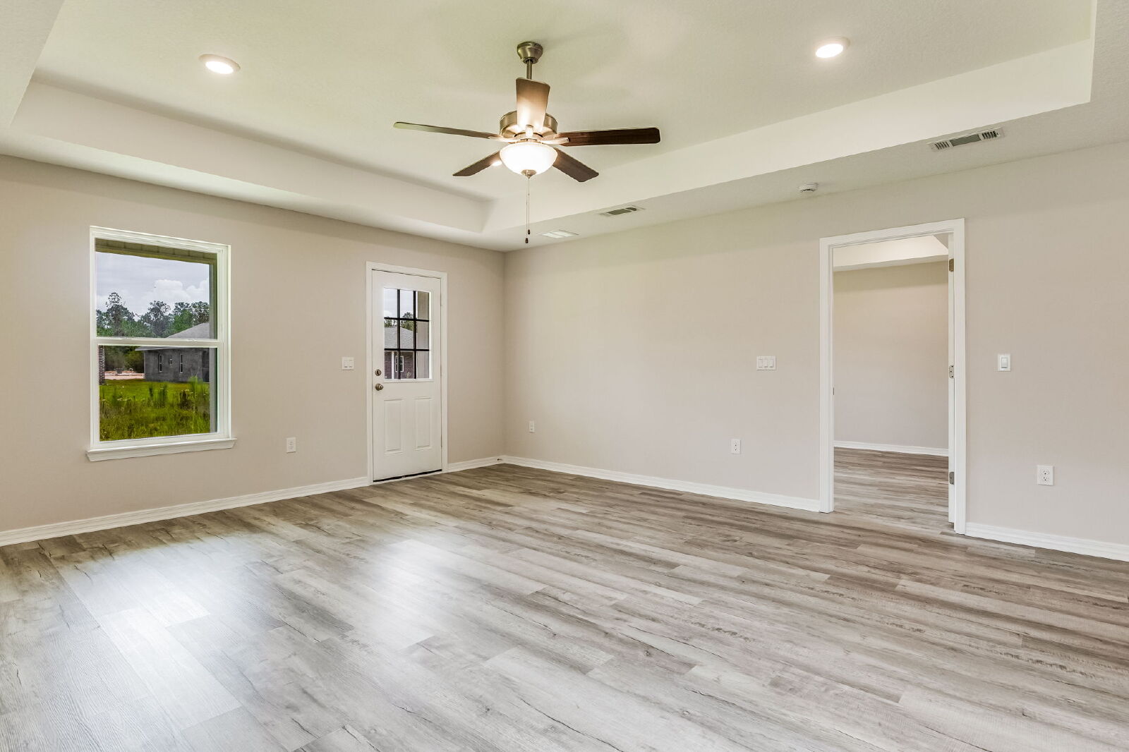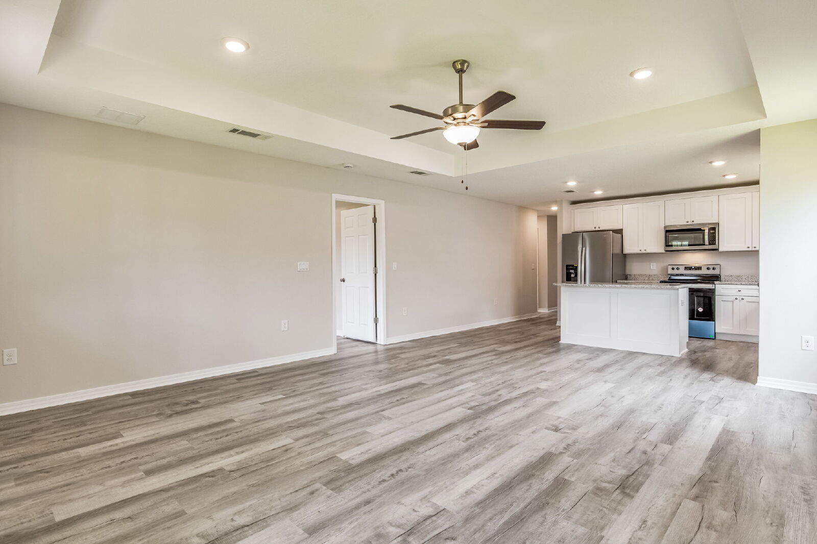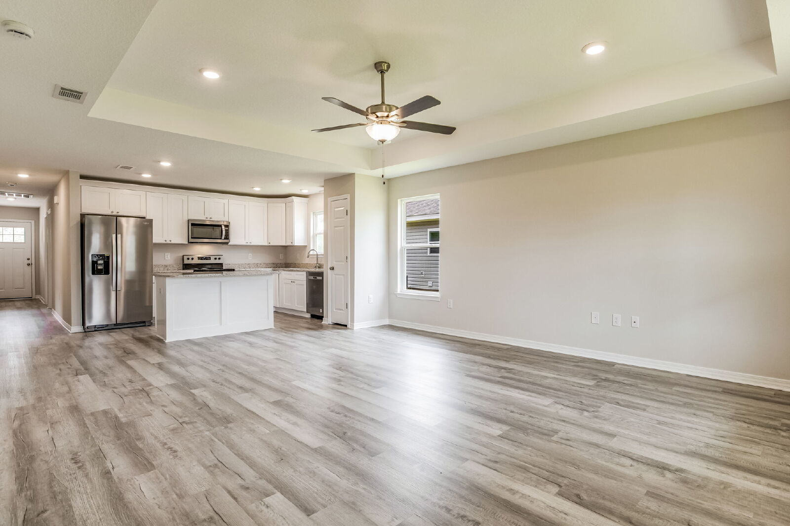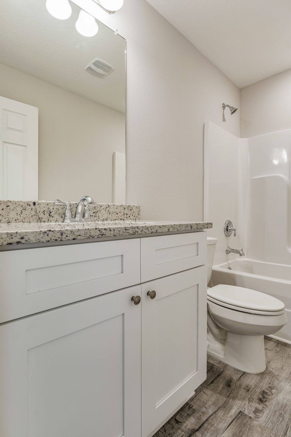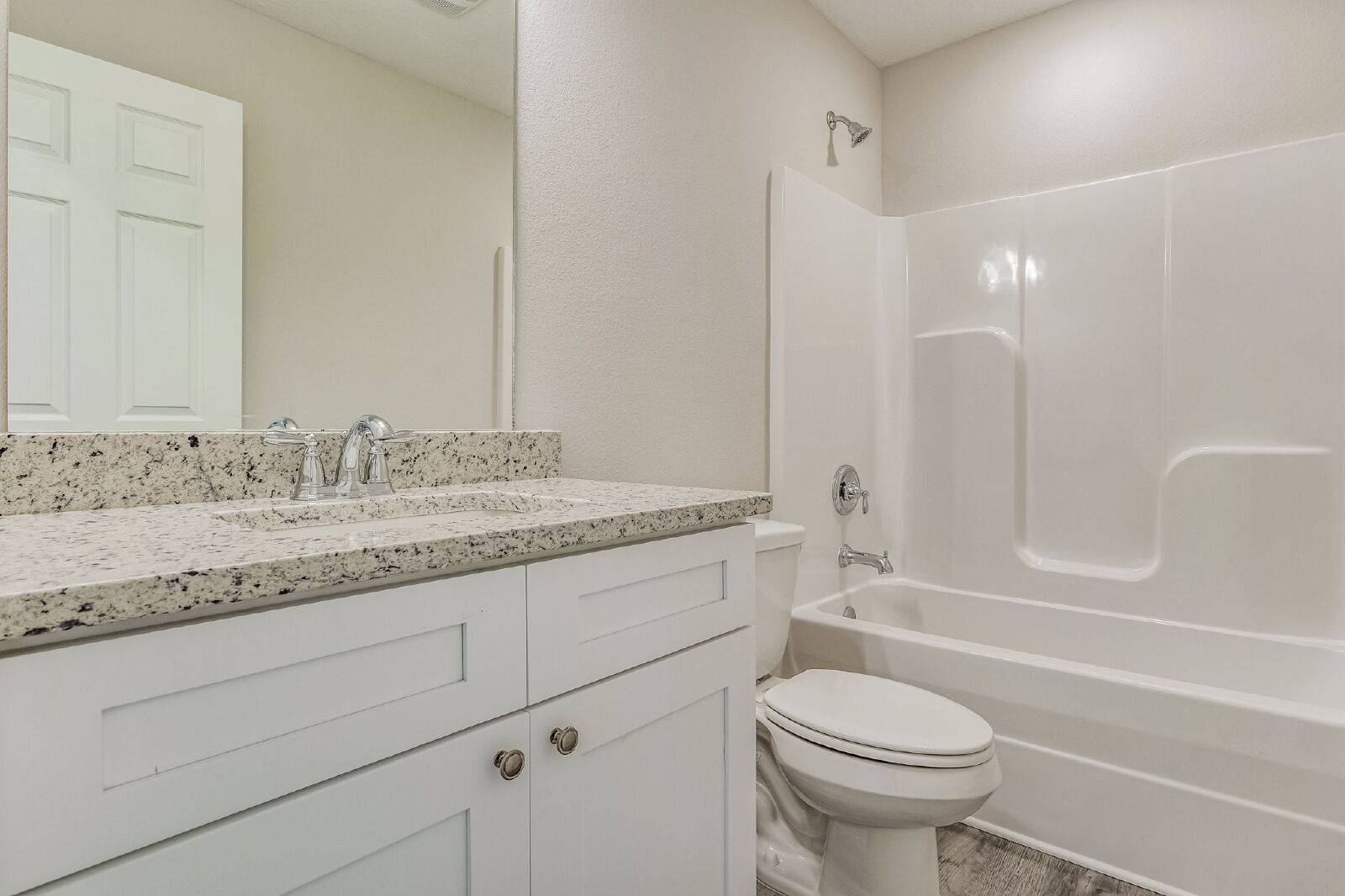 This 3 bed 2 bath home comes with LVP floors throughout the whole home, granite countertops and white shaker soft close cabinets. This well thought out plan features over 1373 square feet and a 1 car garage. The large covered porch welcomes you home. Upon entering the home from the spacious foyer, the two guest bedrooms are conveniently located at the front of the house along with laundry room and full bath. Just beyond the foyer is the open kitchen which overlooks the dining area and spacious family room. The kitchen features granite countertops and makes the perfect space for family gatherings. Fenced in backyard. Schedule your showing today!
