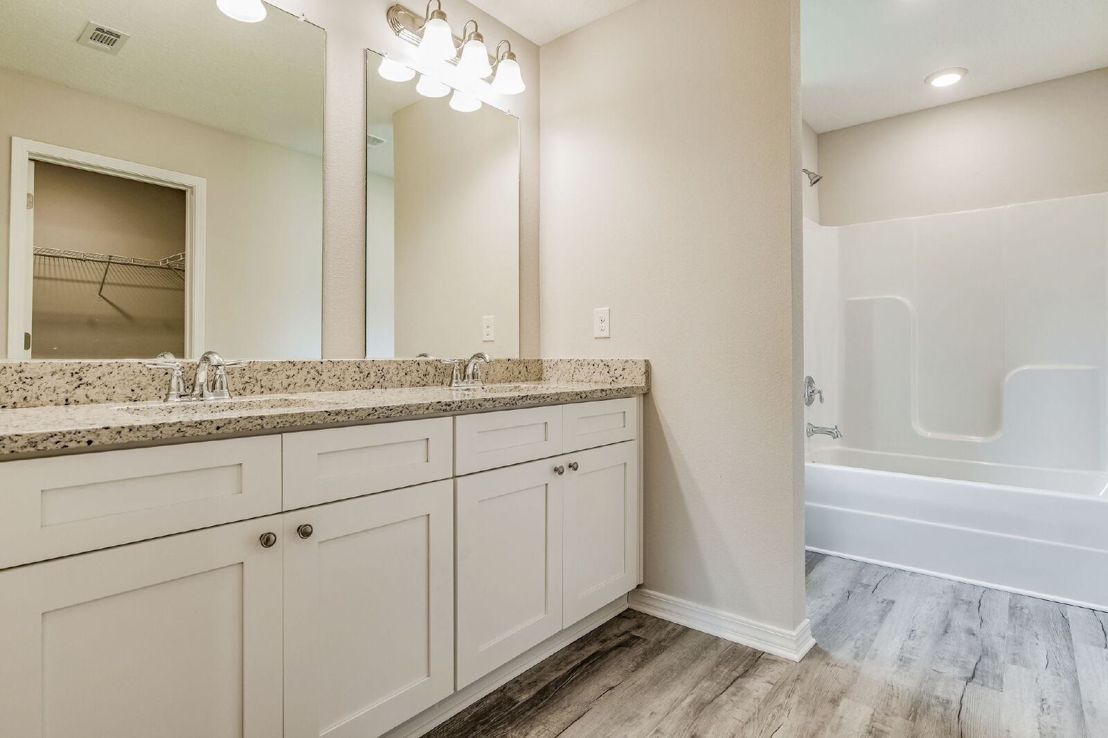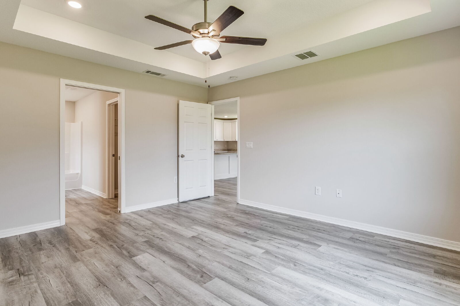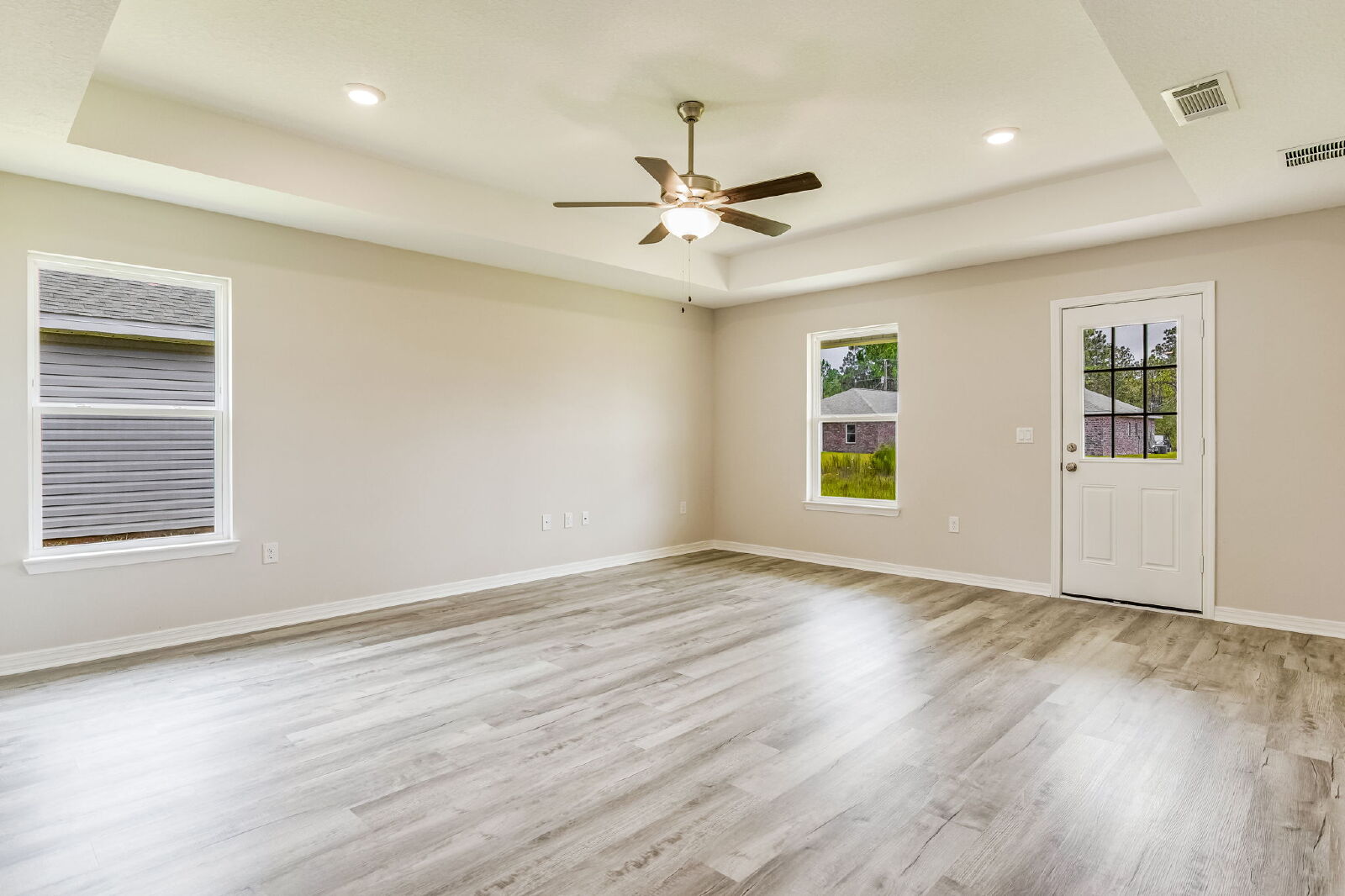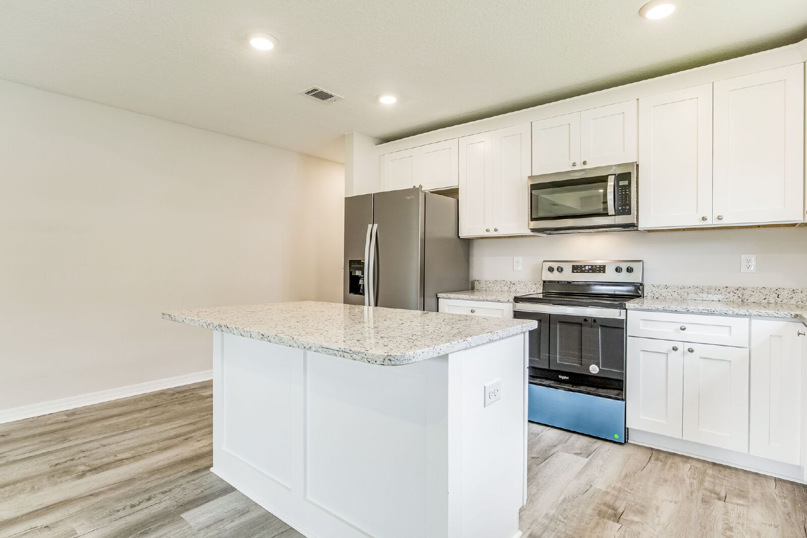 This 3 bed 2 bath home comes with LVP floors throughout the whole home, granite countertops and white shaker soft close cabinets. This well thought out plan features over 1373 square feet and a 1 car garage. The large covered porch welcomes you home. Upon entering the home from the spacious foyer, the two guest bedrooms are conveniently located at the front of the house along with laundry room and full bath. Just beyond the foyer is the open kitchen which overlooks the dining area and spacious family room. The kitchen features granite countertops and makes the perfect space for family gatherings. Fenced in backyard. Schedule your showing today!